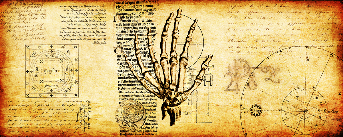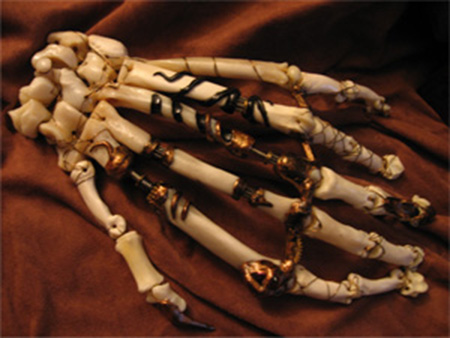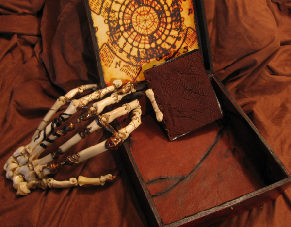 Crafted from (largely) coyote bones, and containing a book that 'detailed' the coded instructions for the building and use of such a device (shown below) the Hand was a one off prop piece that sold back in the early 2010's. |